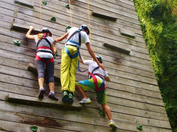 Wer sich hierfür entscheidet, erlebt eine sehr engagierte Atmosphäre und große gemeinschaftliche Unterstützung. Dieses Team Event ist bestens geeignet, wenn Sie gerne etwas Sportliches mit Ihren Teamkollegen unternehmen und/oder das Thema Wagnis mit Coaching verbinden möchten. Die Erlebnisse sind zweifelsfrei emotional und sehr nachhaltig. Es geht dabei immer in ungewohnte Höhe. Gesichert wird von den Teammitgliedern selbst, unter Anleitung und Überwachung erfahrener SICHERHALT Klettertrainer.